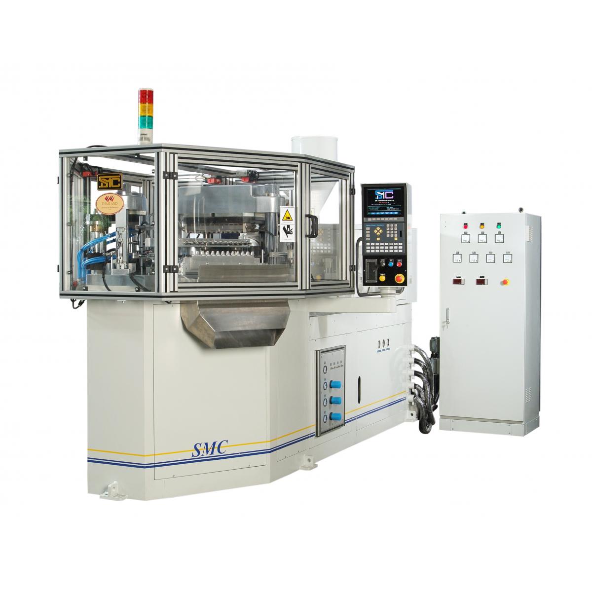 This horizontally set-up SMC Injection Blow Moulding machine series can be equipped with 20-24 cavities of small containers (5ml eye drops for example) and at high speed production. This is suitable for high volume of production for pharmaceutical, cosmetic, food and consumers industries.