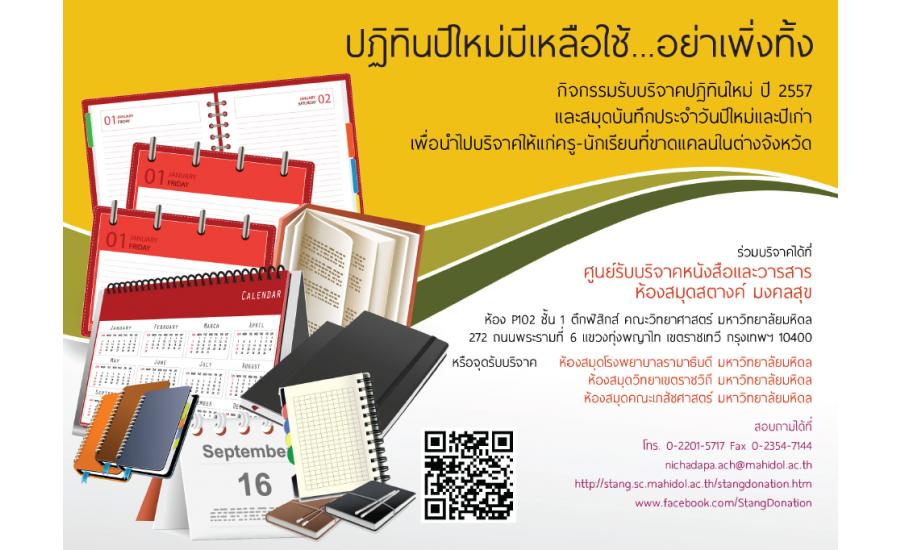 on January 15th,2015 - SMC Corporation Limited has collected old desktop calendars and delivered to The University of the Thai Chamber of Commerce and Mahidol University .