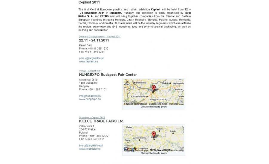 (The 1st International Fair of Central European Plastics and Rubber Exhibition)