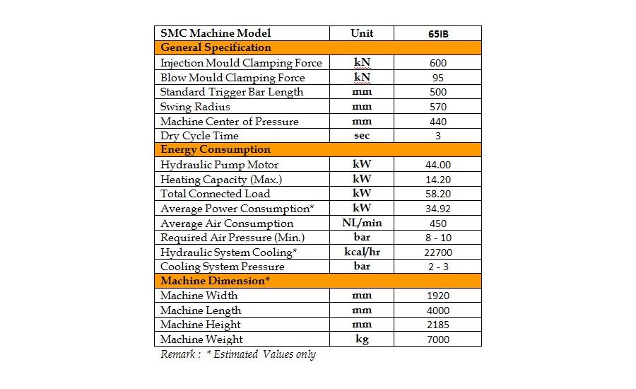 Now, in order to cater to customers wanting for bigger than 60IB but smaller than 85IB; or middle size machine; SMC has come up this new IBM model, SMC-65IB.