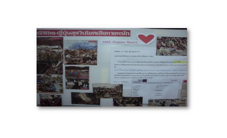 The SMC Management team and employees have organized a project to help victims of tsunami in Japan. The money collected and the donation of 3,726 baht through the Siam Commercial Foundation - SCB to victims on March 19, 2011.