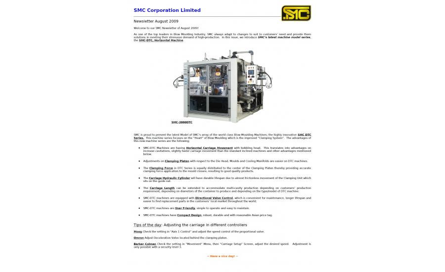 As one of the top leaders in Blow Moulding Industry, SMC always adapt to changes to suit to customers’ need and provide them solutions in meeting their strenuous demand of high-production. In this issue, we introduce SMC’s latest machine model series, the SMC-DTC, Horizontal Machine.