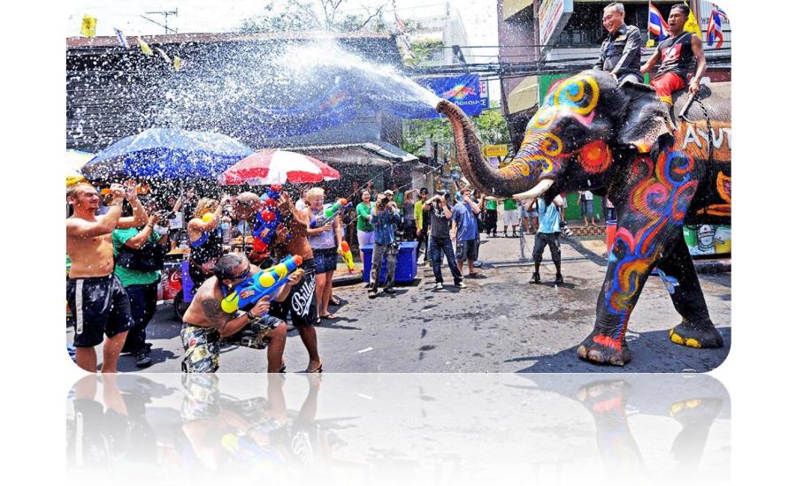 Songkran Festival starts on from the 13th - 15th of April as Thai public holiday which is known for its water festival.  It is mostly celebrated by young people. Major streets are closed to traffic, and are used as arenas for water fights. Celebrants, young and old, participate in this tradition by splashing water on each other. Traditional parades are held and in some venues "Miss Songkran" is crowned where contestants are clothed in traditional Thai dress.