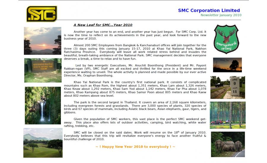 A New Leaf for SMC…Year 2010 Another year has come to an end, and another year has just begun. For SMC Corp. Ltd. it is now the time to reflect on its achievements in the past year, and look forward to the new business year of 2010.