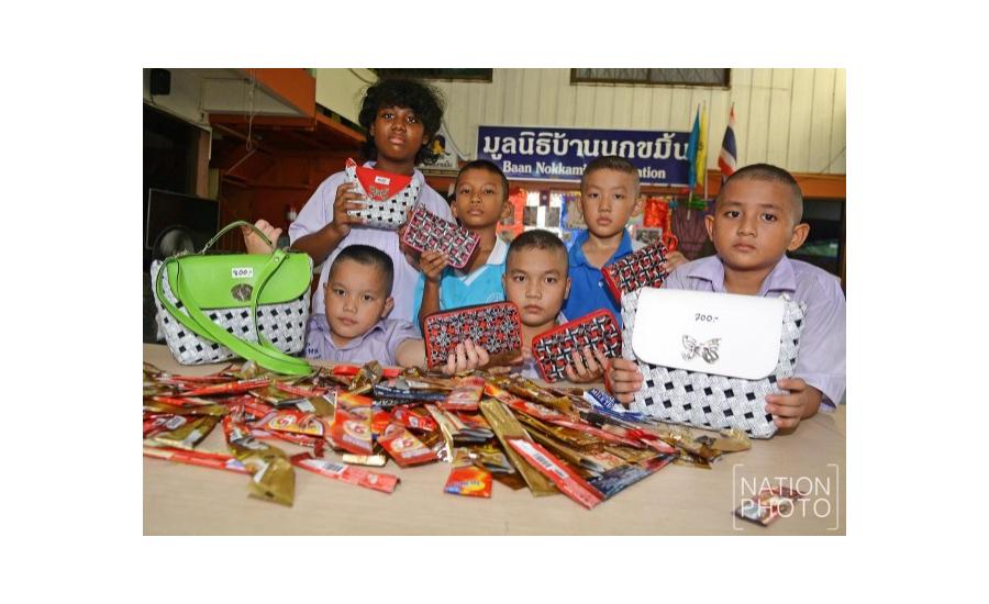 SMC delivered 5th boxes of used drinking sachets for them to make bags.