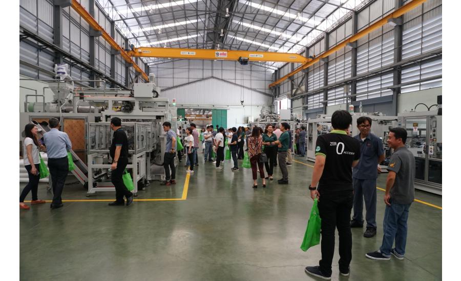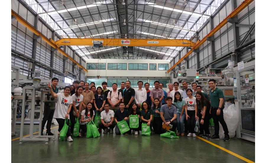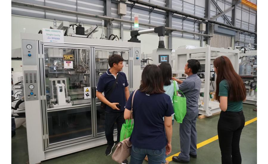 on Thursday, April 4, 2019, at the SMC factory, Kanchanaburi: The participants visited SMC Factory to see the facilities and efficiency of machine production and assembly line as well as SMC demonstration on HOT SALES Series; SMC Extrusion Blow Moulding Machines with PP resin of HMC; RP6068 too.