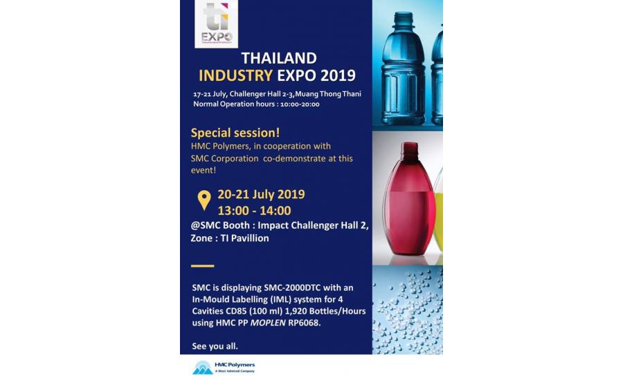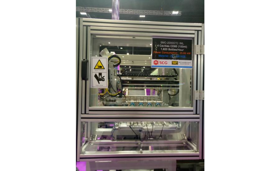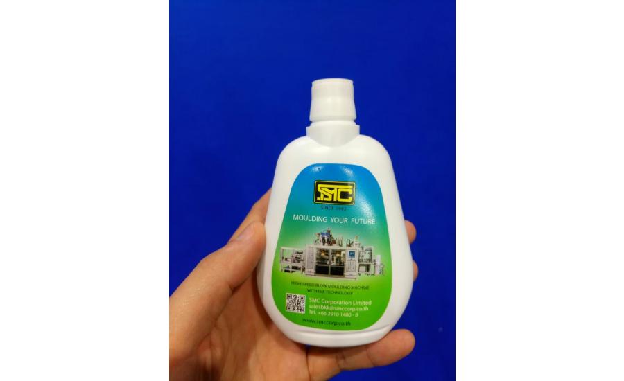 SMC has demonstrated Extrusion Blow Moulding Machine; SMC - 2000DTC with 2 types of plastic resins, including In-Mould Labeling (IML) Technology.