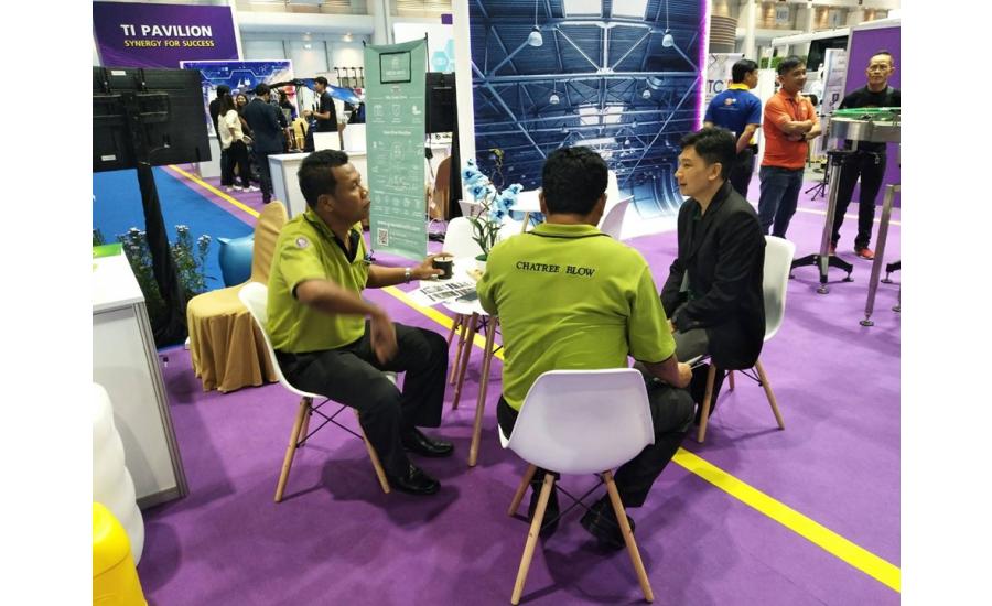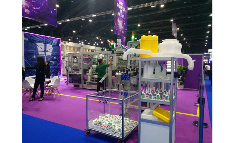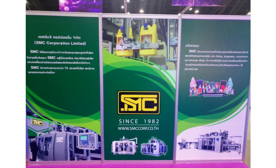 Throughout the 5-Days-Show of this event, SMC received Excellent Eeedback from all Thai and foreign visitors, current customers, new businessmen, students from various universities, officers from Government sectors, Suppliers, and other visitors who are interested in Plastic Packaging Business and Technology of SMC Extrusion Blow Moulding Machines with in-mold labeling technology, including automatic cutting bottles by 100% Thai Engineers Manufacturer and made in Thailand.