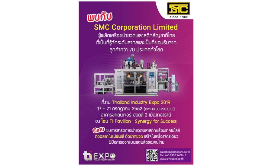 SMC Corporation Limited received a great honor and would like to thank all visitors who are interested in SMC Machine at Thailand Industry Expo 2019, which was held at TI Pavillion Zone : Synergy of Success at Challenger 2, IMPACT Muang Thong Thani, Bangkok, during 17 - 21 July. 2019. SMC have very successfully and extraordinary response from all parties in this show.