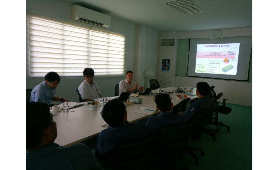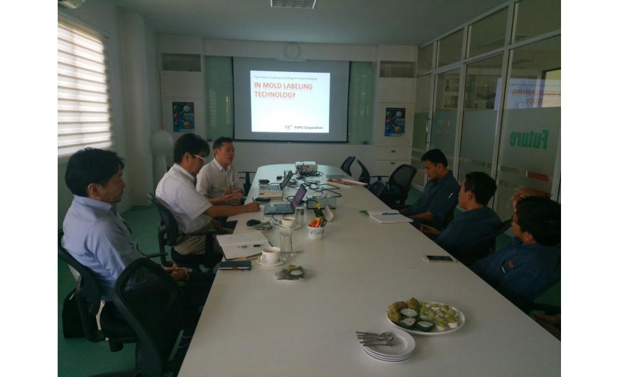 On last Thursday, September 18th, Yupo Japan came to visit & share their knowledge and expertise tip & trick about the IML Label with SMC's engineering team for the better understanding and developing both the Label Maker and Machinery Manufacturer sides on the design of the machine parts, the mould to use with IML Labels, the operation settings as well as the remarks of the various IML labels types by honor speakers from Yupo Japan as follows;