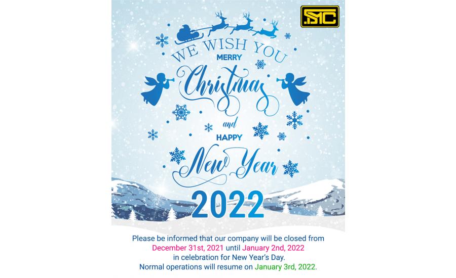 Please be informed that our company will be closed from December 31st, 2021 until January 2nd, 2022