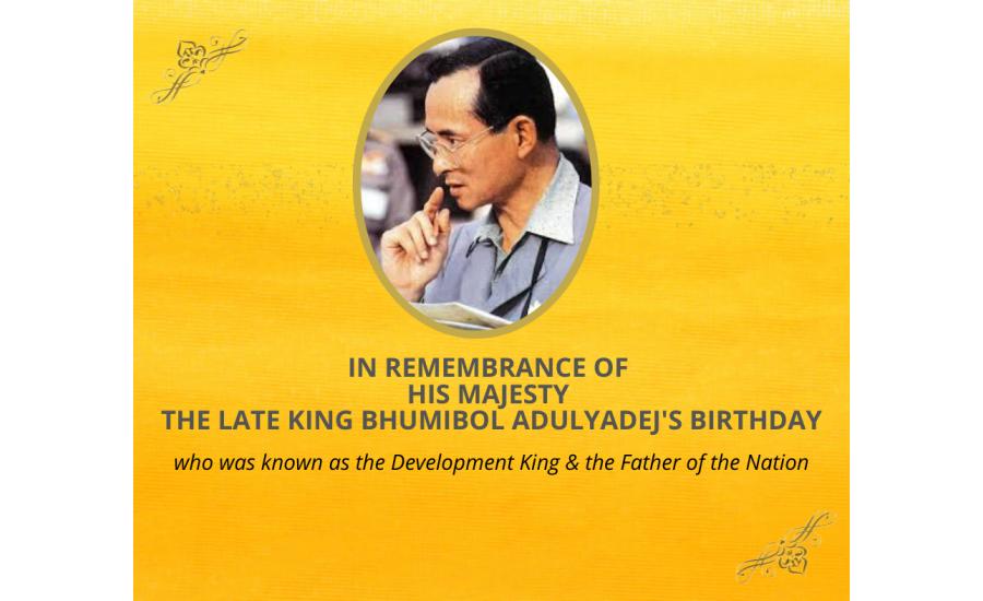 Please be informed that our company will be closed on Monday 5th of Decemberas Thai Father’s Day. We will resume normal work on Tuesday 6th of December 2022. Father's Day in Thailand One of the many public holidays on Thailand’s calendar, the birthday of the late King Bhumibol Adulyadej’s. On 5 December has long been one of the most prominent. Until his death aged 88 on 13 October 2016, this holiday had long been celebrated as the King’s Birthday, as well as being marked as Father’s Day. Even now December 5th remains as Father’s Day and also acts as a remembrance of King Bhumibol and his birthday.