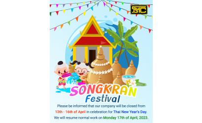 Please be informed that our company will be closed from 13th - 16th of April in celebration for Thai New Year's Day . We will resume normal work on Monday 17th of April,...